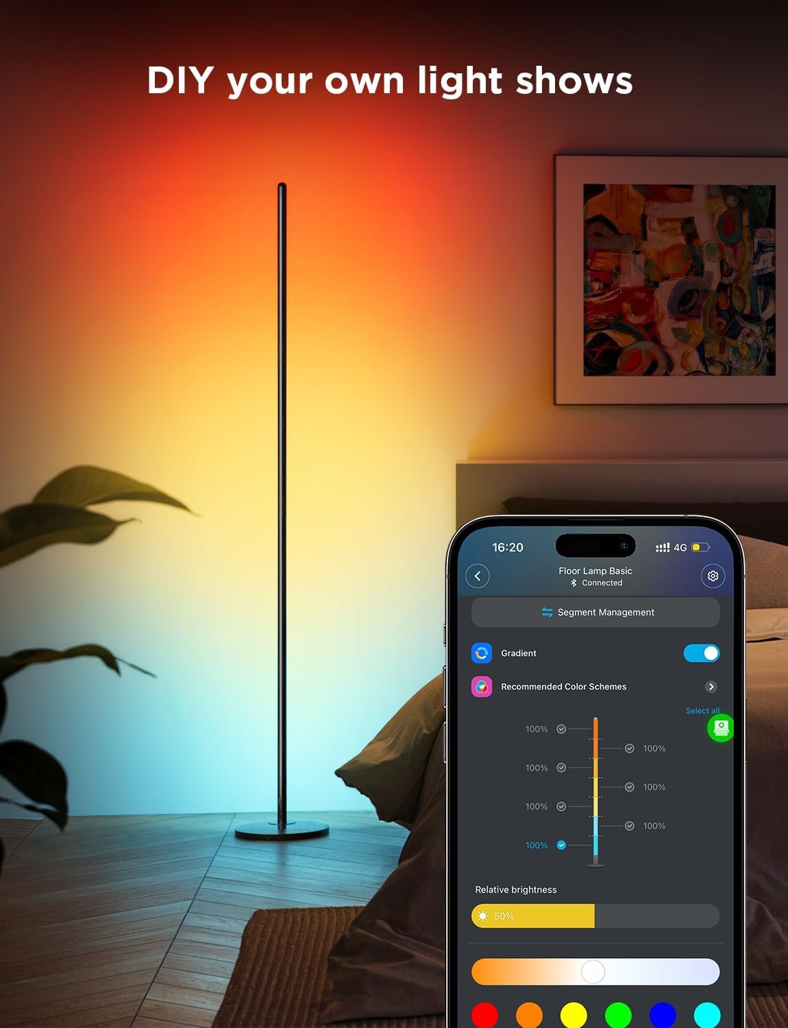 Unlike standard RGB lighting, RGBIC technology enables the Govee RGBIC Floor Lamp Basic to display flowing gradients and multi-color effects at the same time.